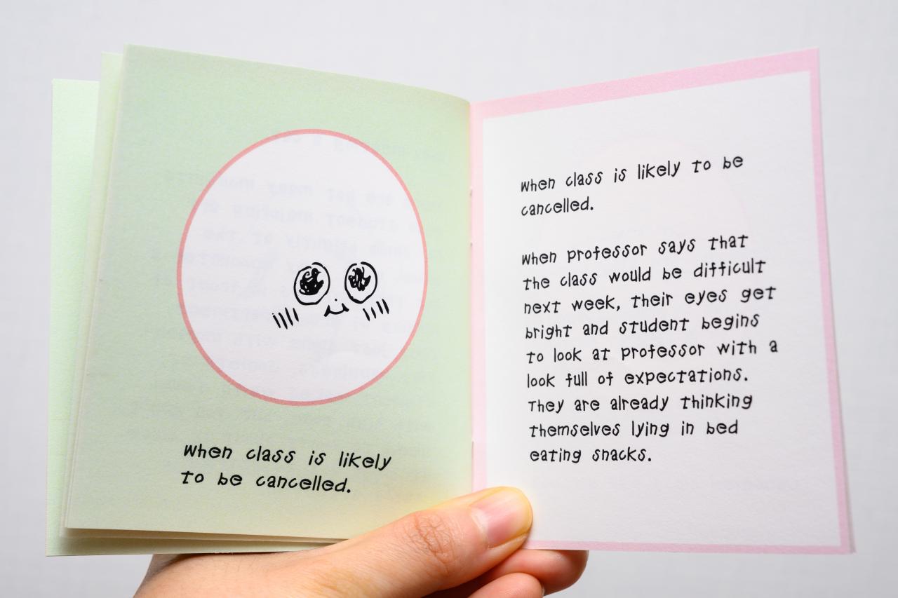 The uncommon thing during the production is the interference in work. For example, the sketch paper may be stuck in the duplicator; the completely unrelated proofs and drawing may be put together; an unclear work may be printed on the kraftpaper; or probably a working contract just appears before your eyes suddenly. These are the coincidences I am looking forward to and which I believe are the mystery-like unconventional artistries in the artists’ book.